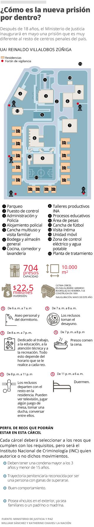 La UAI Reinaldo Villalobos es una cárcel que el mismo director de Adaptación Social, Mariano Barrantes, describe con un "diseño arquitectónico inédito en el sistema penitenciario", en donde al privado de libertad se le ofrece una vida “muy similar a la de afuera”.
