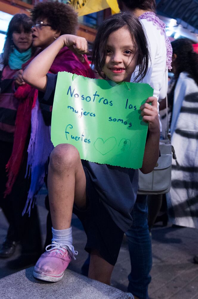 Briana Carmona Quesada, 7 años. Su madre, Irene Quesada, marchó con ella “por los derechos de las mujeres, por ser independientes y para que ella aprenda lo que es ser mujer en realidad”. La niña escribió su mensaje y lo defendió hasta el ocaso de la noche.