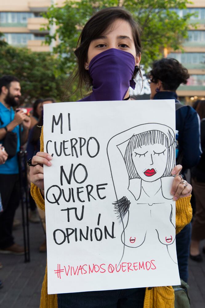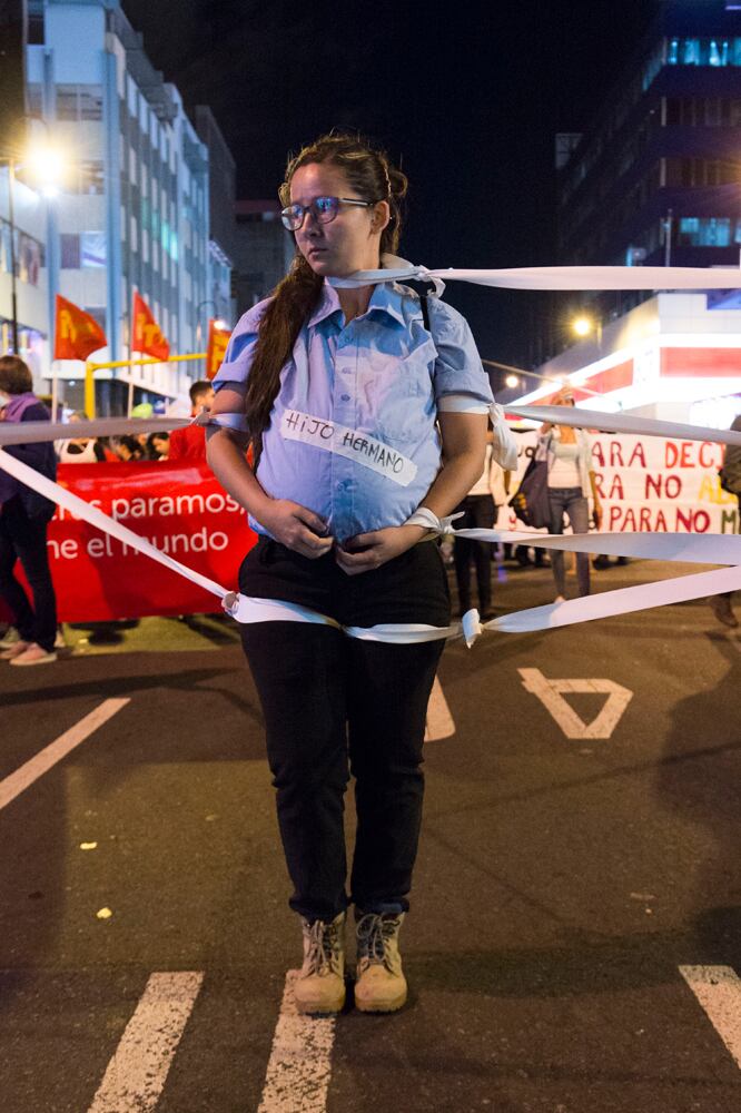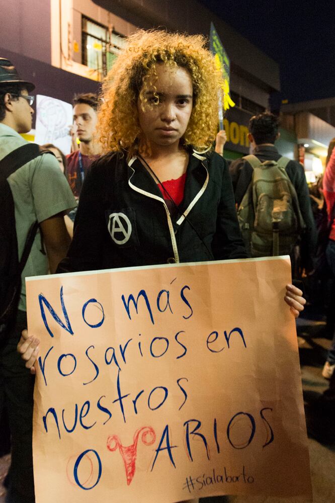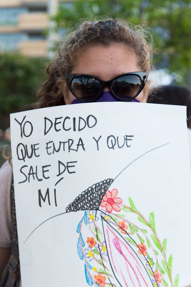 Celeste Carballo Monge, 22 años. “Los motivos (para marchar) son muchos: todas las muertes, todos los embarazos no deseados por violaciones, todo el drama que hace la iglesia y la gente, los asaltos a mujeres, violaciones, los piropos... O sea, es demasiado cansado todos los días. Son demasiadas cosas”.