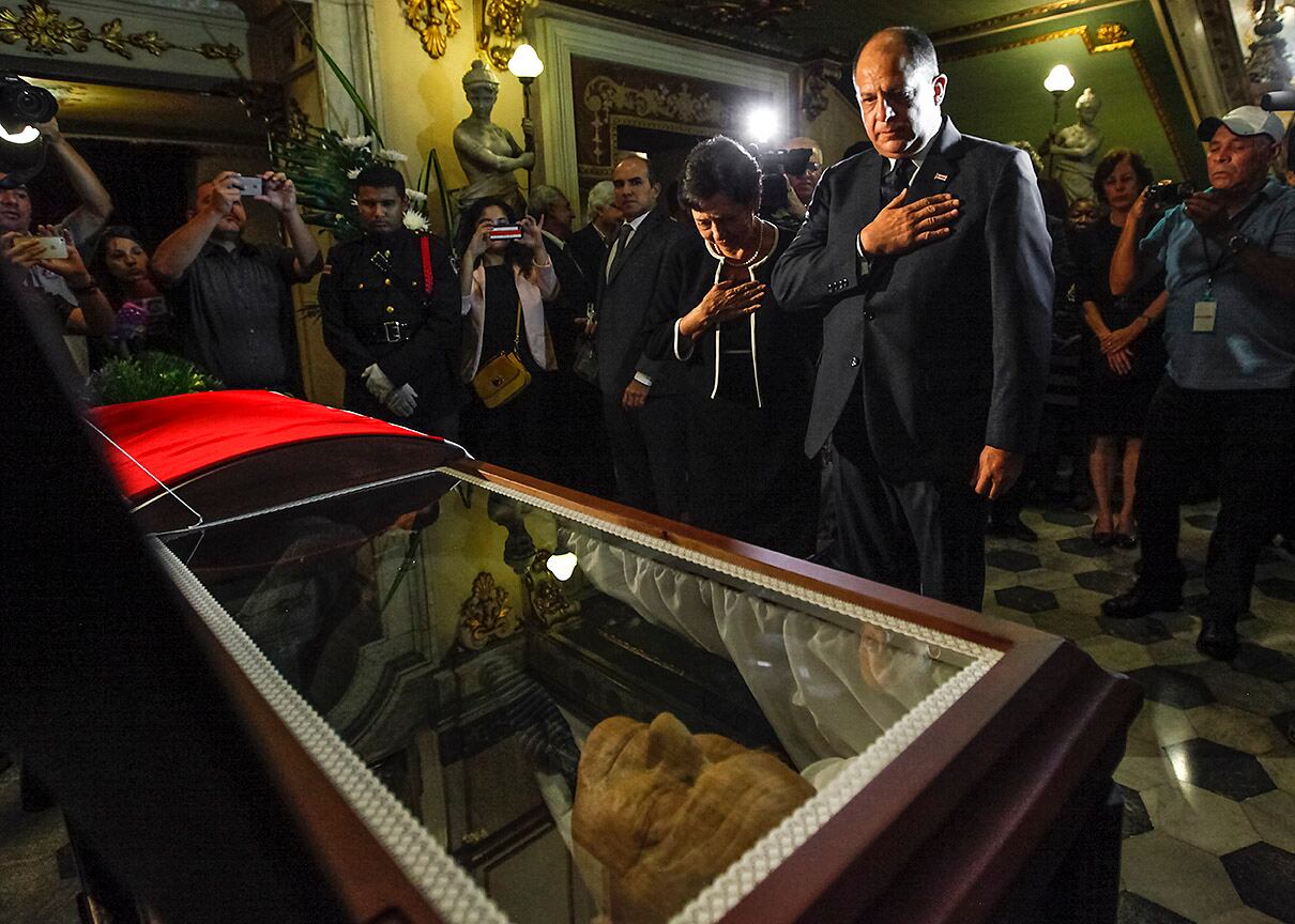 El presidente de la República, Luis Guillermo Solís, rindió su último homenaje al político, periodista, dramaturgo y escritor Alberto Cañas, en el Teatro Nacional, a las 2:45 p. m. de este domingo.