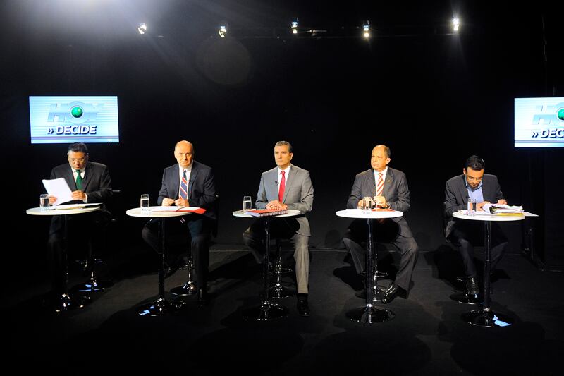 El debate se dio de 9 p. m. a 11 p. m. entre los aspirantes Johnny Araya (Partido Liberación Nacional, PLN), Rodolfo Piza (Partido Unidad Social Cristiana, PUSC), Otto Guevara (Movimiento Libertario), Luis Guillermo Solís (Partido Acción Ciudadana, PAC) y José María Villalta (Frente Amplio).