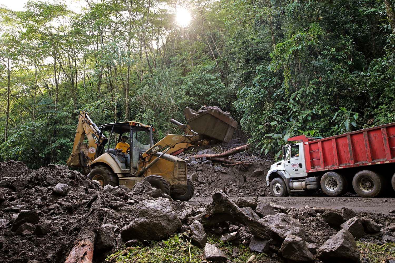 Maquinaria del Consejo Nacional de Vialidad (Conavi) junto a empresas privadas contratadas de emergencia trabajan en la limpieza de la carretera. Sin embargo, el funcionario aseguró que la apertura del paso no será hoy, y posiblemente pasará cerrado dos días más.