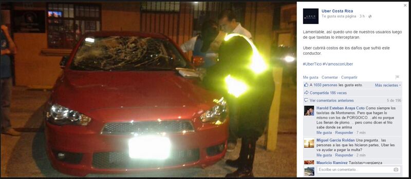 Los hechos ocurrieron en San José a las 11:30 p. m., tan solo ocho horas después de que el servicio de transporte empezara a operar en el país, en medio de la oposición de los taxistas y de los recordatorios del Gobierno sobre su ilegalidad.