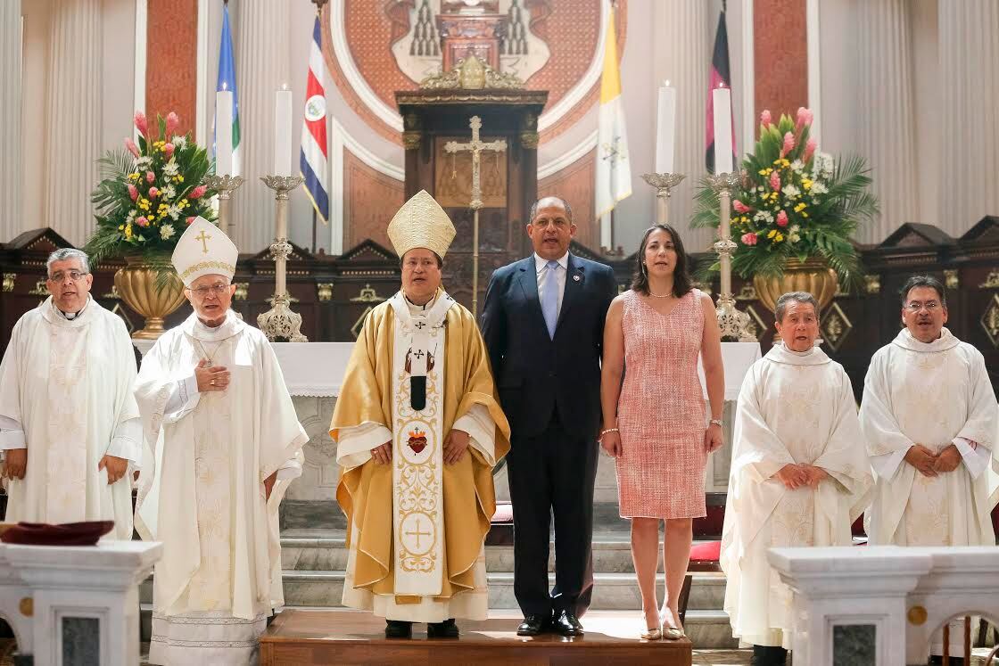 A la actividad religiosa celebrada a las 8:30 a.m., acudieron el mandatario Luis Guillermo Solís, su compañera, Merceces Peña, y sus hijos. También asistieron miembros del gabinete como Helio Fallas, ministro de Hacienda; Víctor Morales, jerarca de Trabajo y Sonia Marta Mora, de Educación.