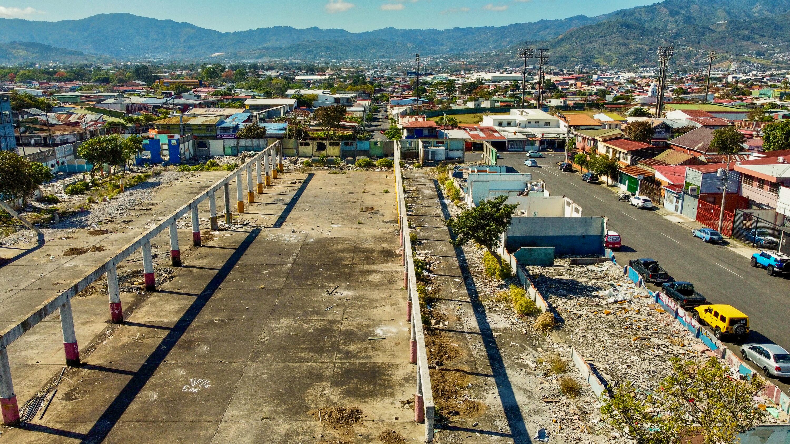 Caminamos sobre un suelo ya casi despejado de escombros, al centro del terreno, pero las esquinas rebosadas de tablas, botellas de guaro, un condón, cáscaras de melón, el rótulo de un sindicato del Ministerio de Obras Públicas y Transportes cuando no era MOPT, sino MOP. Las paredes nos las tenemos que imaginar. El suelo, por, ahora, aquí está, bajo los pies, pero se dice que pronto lo quebrarán para extraer cualquier metal valioso de las tuberías.