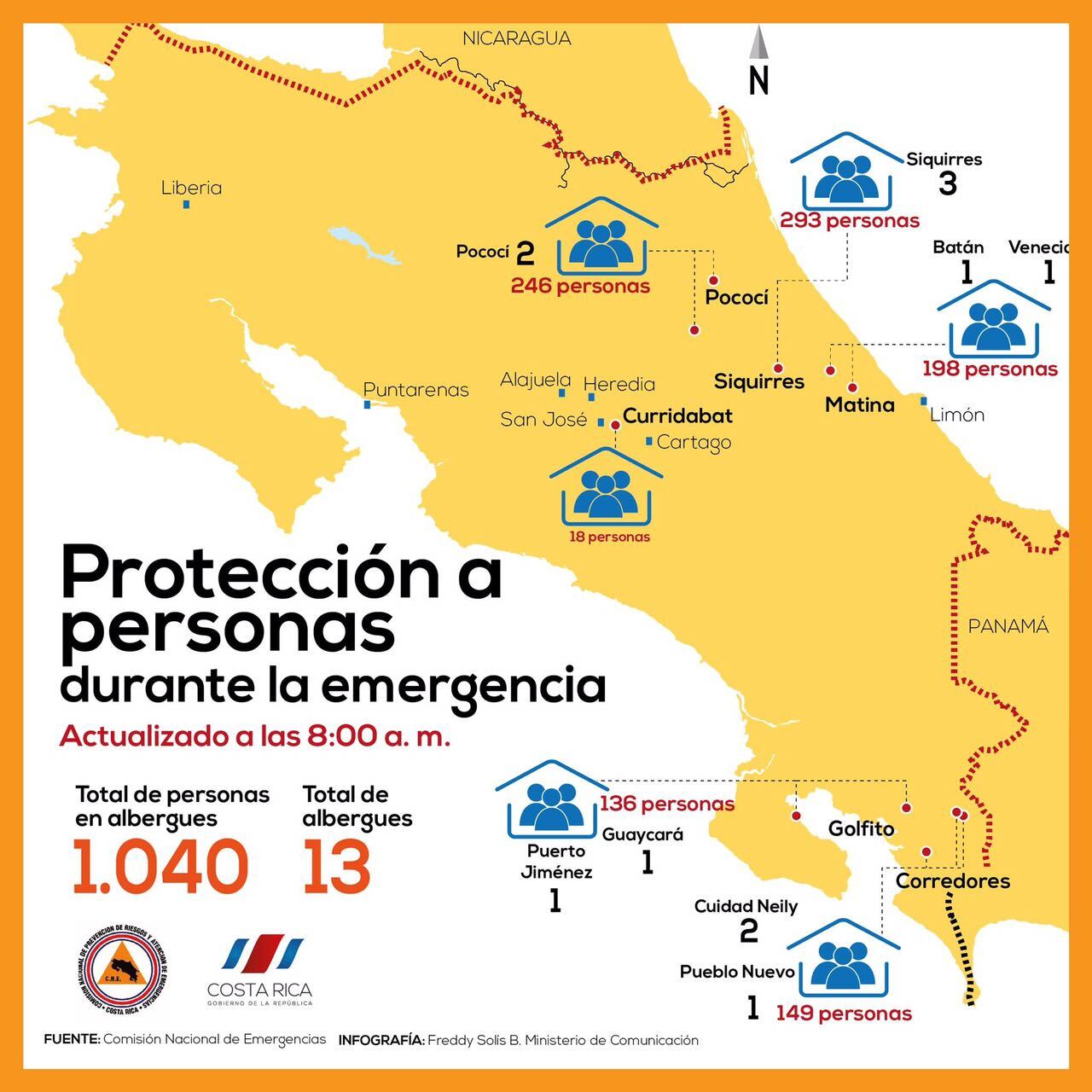 En ellos permanecen 140 personas, de acuerdo con los datos proporcionados por Iván Brenes, presidente de la Comisión Nacional de Emergencias (CNE).