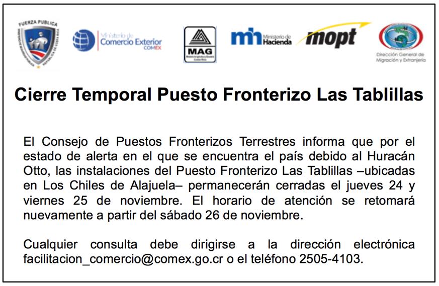 5:23 p. m. Cierre temporal de puesto fronterizo Las Tablillas