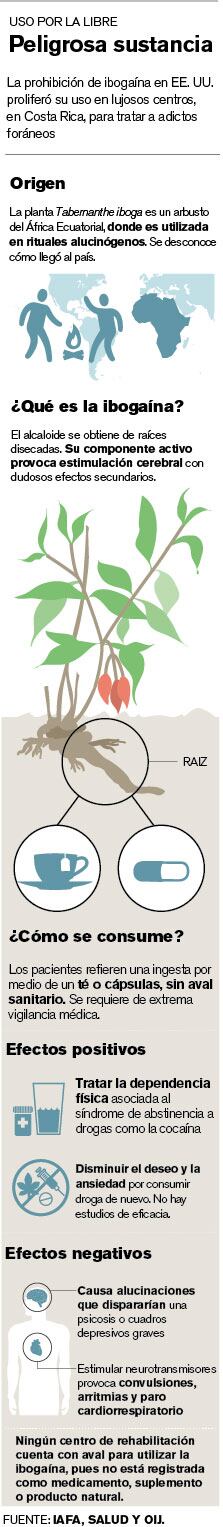 Desde agosto del 2014, el Instituto Costarricense sobre Drogas (ICD) advirtió al IAFA de que en Guanacaste operaban cuatro centros de tratamiento con ibogaína, sin ningún permiso.