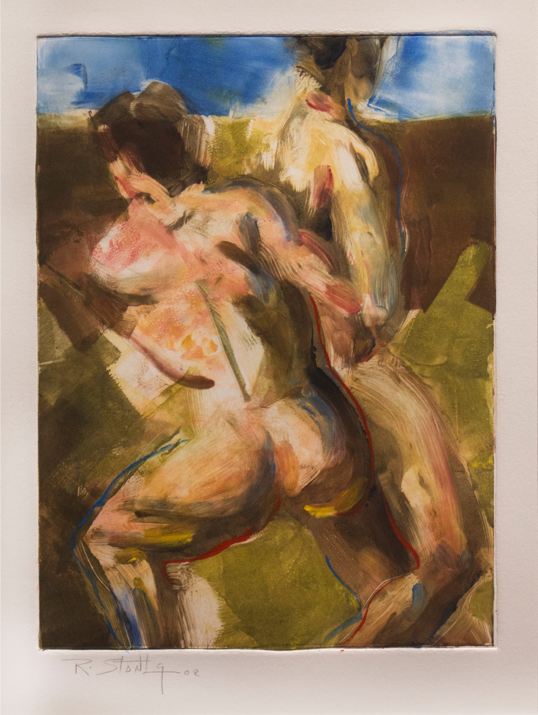 Superada la expectativa se pasa a un conjunto de obras articuladas acerca del encuentro sexual. Como curadores nos interesó cómo el erotismo se puede entender como una energía que deviene en desequilibrio interno, en la entrega, la pérdida de sí, la confusión con los otros para formar “una sola carne”.