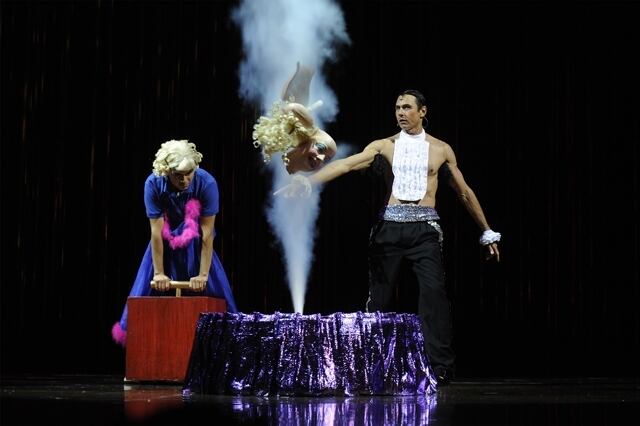 Alena Zhuravel, tanto en el papel de la prometida, como en el solo de equilibro sobre las varas, nos cautivó por la belleza y riesgo de sus rutinas. Lo mismo sucedió con Katja Kortstrom en el aro aéreo.