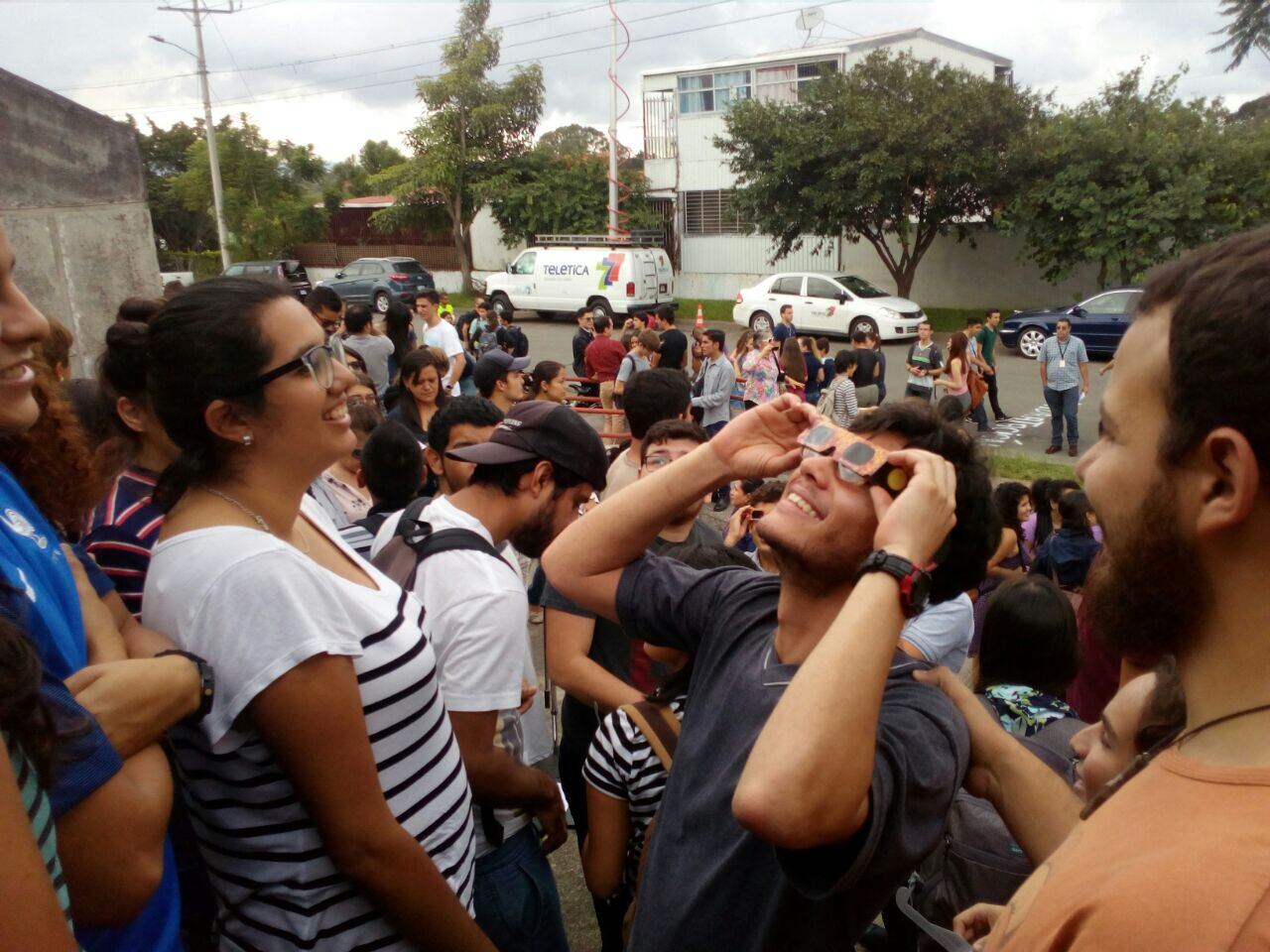 "Pensé que no íbamos a ver nada, pero nos prestaron unos lentes, y sí hemos logrado ver algo cuando las nubes dejan", dijo Kevin Jiménez, estudiante de enfermería de la UCR, quien asistió con sus compañeros al Planetario.