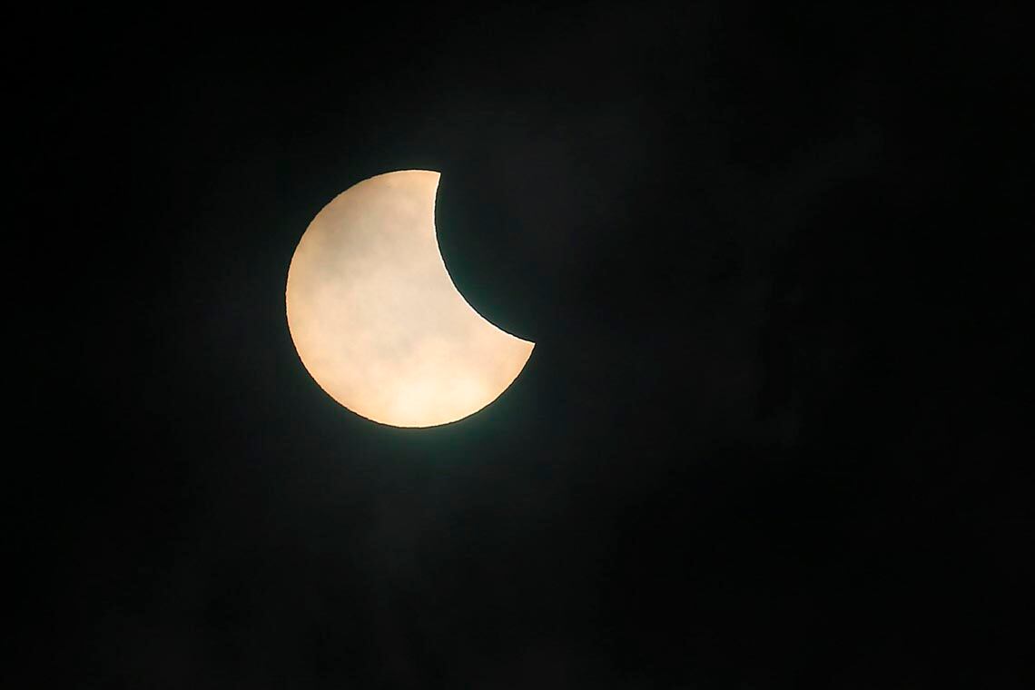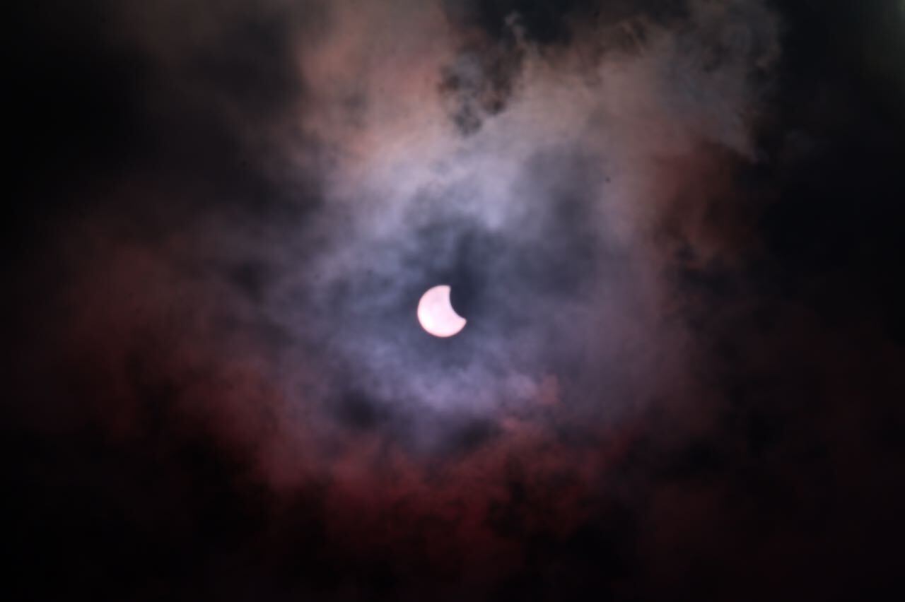 Un cielo nublado impidió observar a plenitud el eclipse de total de sol, que en nuestro país se vio de forma parcial. Sin embargo, quienes pudieron verlo en los lapsos en que se despejaba el cielo, contemplaron maravillados cómo la Luna se interpuso entre la Tierra y el astro rey.