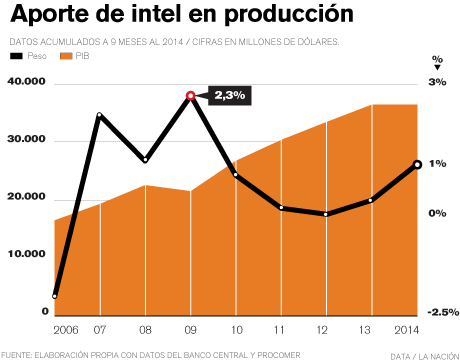 En términos netos (diferencia entre exportaciones e importaciones), Intel dejó a la economía $350 millones, equivalentes al 1% del producto interno bruto (PIB).