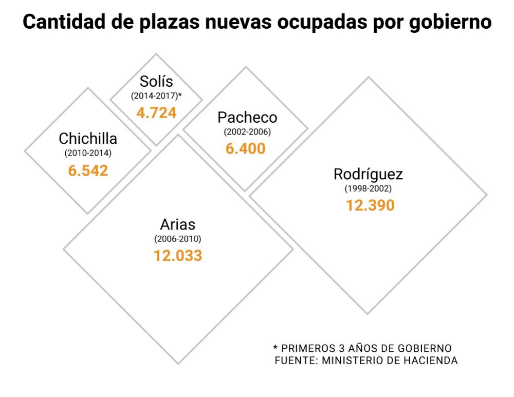 Además, en el contexto de la crisis financiera en Estados Unidos, el gobierno de Óscar Arias creó 12.033 plazas en el Gobierno Central, según datos del Ministerio de Hacienda.