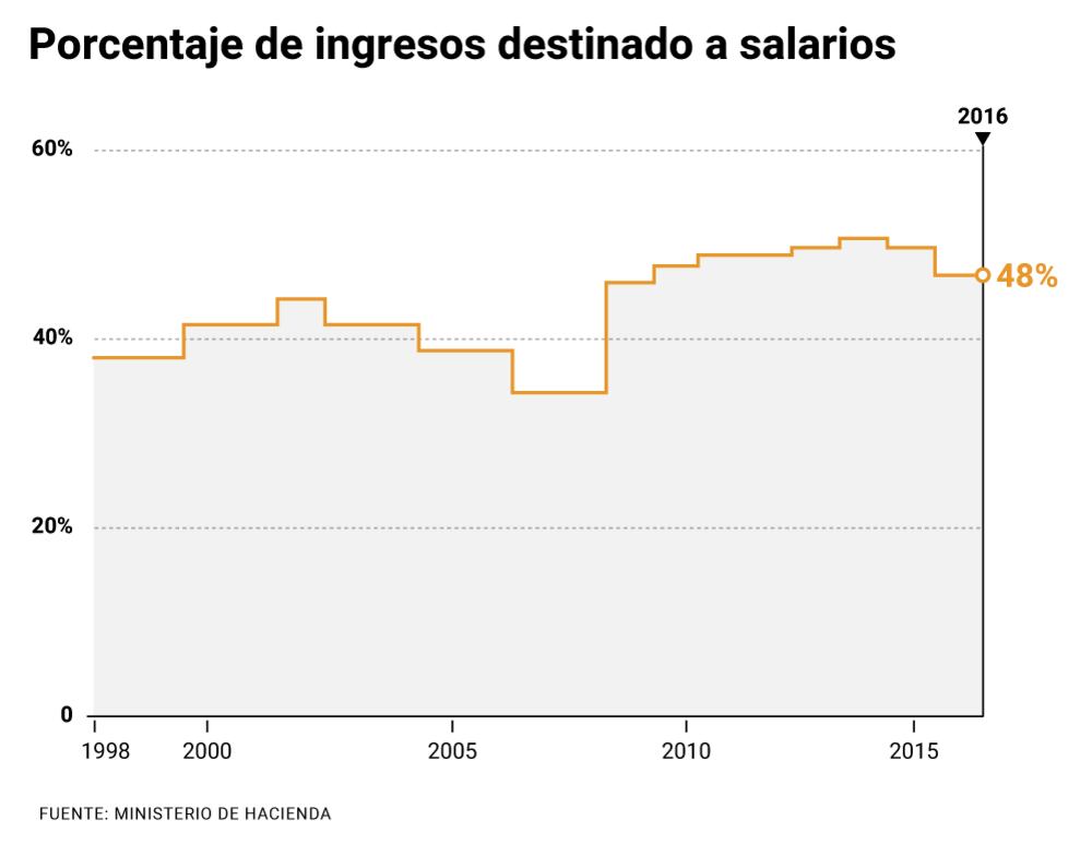 El resultado de estas políticas ha ocasionado que el porcentaje de los ingresos que se usa para pagar salarios haya pasado de un 38% en 1998 a un 48% en el 2016.