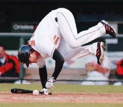 David Newhan, de los Orioles, fue a dar al suelo tras recibir un pelotazo del lanzador de los Tigres. | AP (GAIL BURTON)