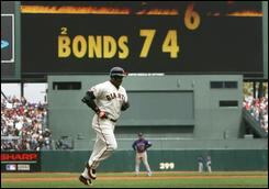 Bonds, quien también tiene el récord para una temporada con 73, no pegaba bambinazos desde el 8 de mayo cuando castigó con uno a los Mets de Nueva York.