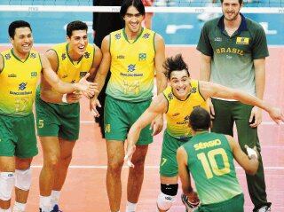 Gilberto Godoy Filho(7), de Brasil, celebra con sus compañeros Marton Yaared (17) y Jr.Sidnei Dos Santos(5), entre otros, el triunfo. | AP (Itsuo Inouye)