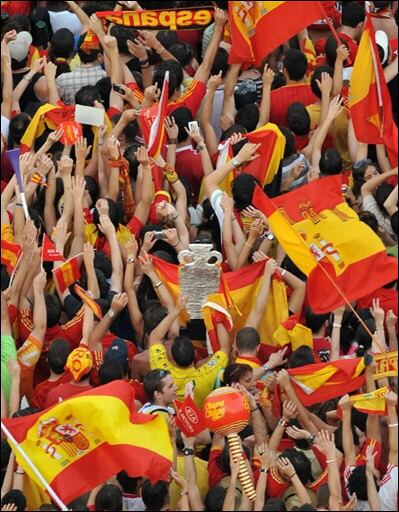 (ARCHIVO) Miles de fanáticos españoles celebran en Sevilla la obtención de la Euro 2008. La foto es del 30 de junio de 2008. España celebra la Euro 2008 | AFP