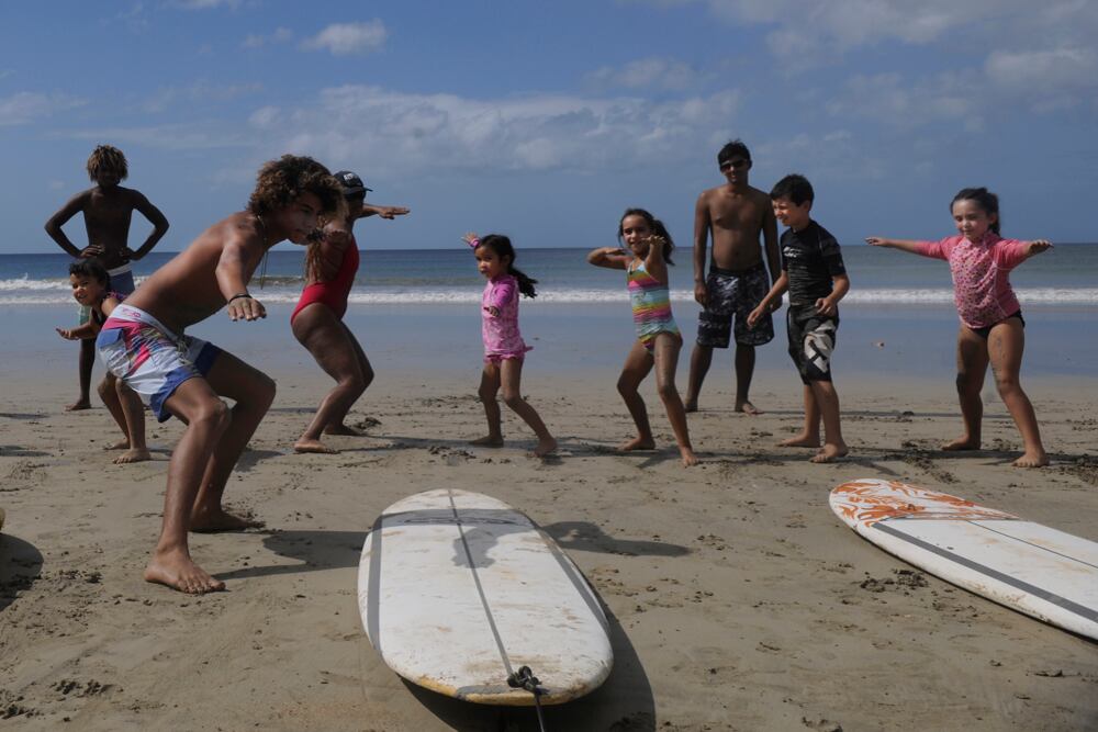 La mayoría sueñan con ser surfistas profesionales, pero Andrea insiste en que se olviden de eso; que lo primero es el estudio.