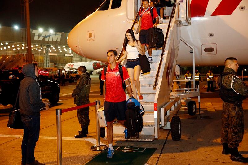 Los integrantes de la Selección de Costa Rica hicieron su arribo a Santos, su cuartel de concentración durante el Mundial Brasil 2014, al ser pasadaslas 8 p. m., luego de disputar su segundo encuentro de la fase de grupos ante Italia, con triunfo de 0-1.