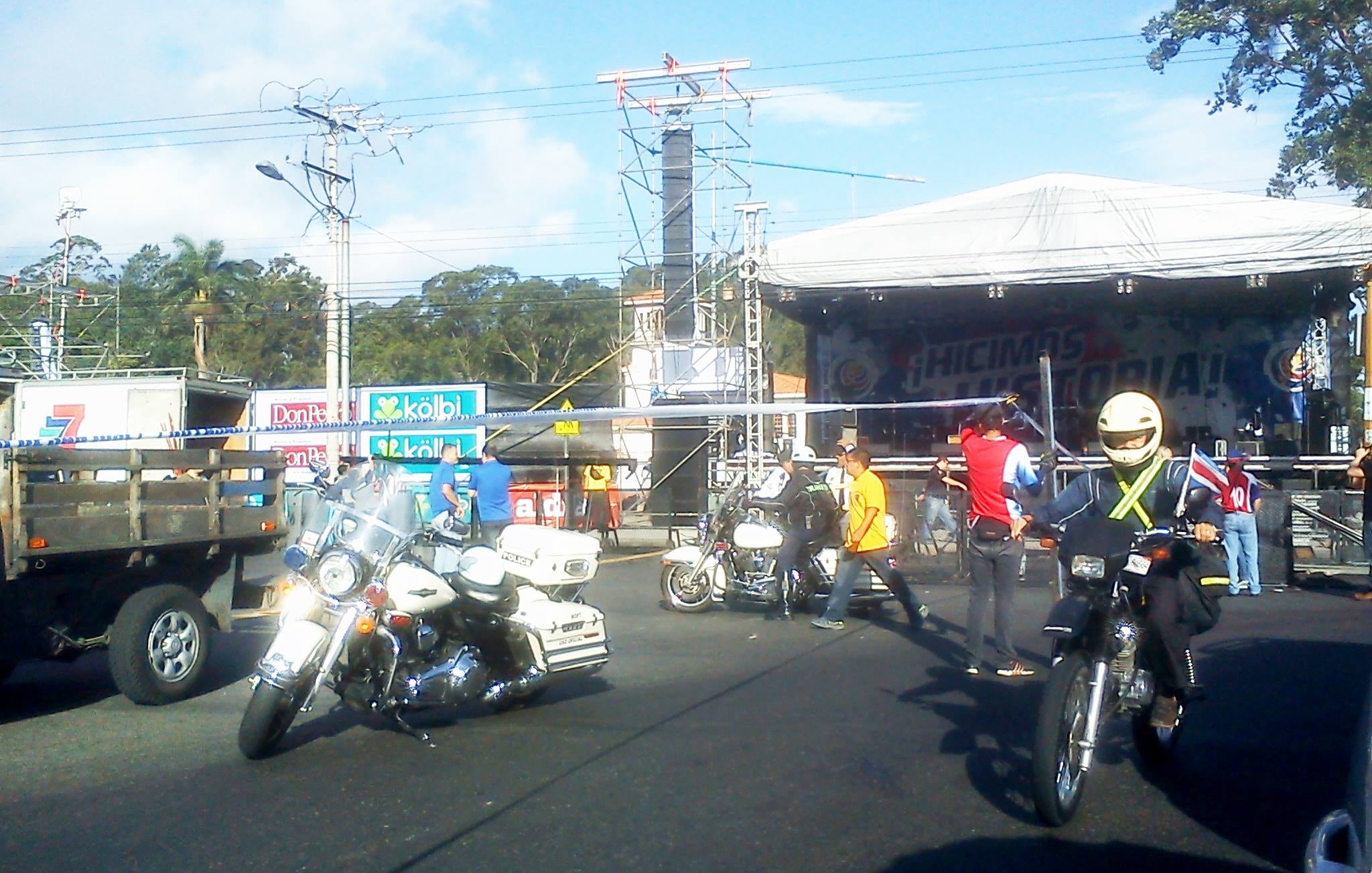 El MOPT recordó que en el cruce de la ruta 42 con el Paseo Colón, frente a la estatua de León Cortés, se están instalando tarimas y estructuras para el recibimiento de la Selección Nacional. Debido a esto, Alfredo Zamora, de la Policía de Tránsito, dijo que está cerrado el paso que va desde Pavas hacia el Paseo Colón.
