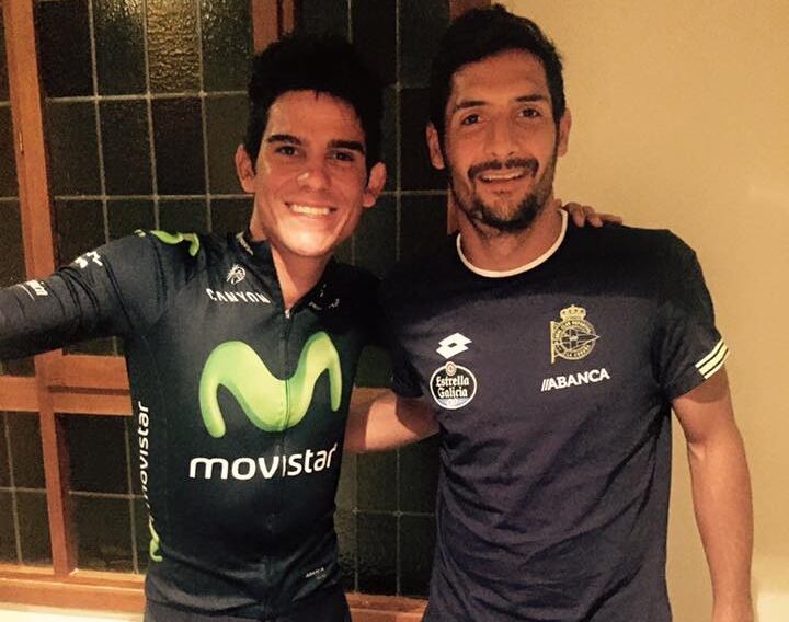 Al llegar al hotel Meliá Galgos junto a sus compañeros, el pedalista nacional se percató de que ahí está concentrado el Deportivo La Coruña que visitará este lunes al Rayo Vallecano.
