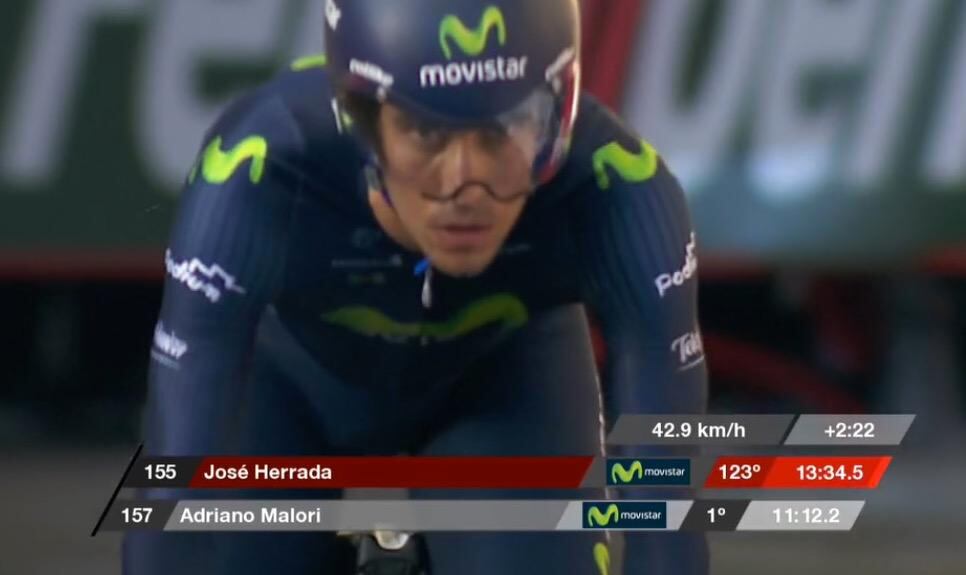Hoy, en la contrarreloj individual de 9.7 kilómetros en Santiago de Compostela, el rutero tico finalizó en la posición 87 y cronometró un tiempo de 12:45, a 1:33 de su compañero Adriano Malori, quien hizo la mejor marca en la última competencia.
