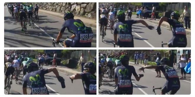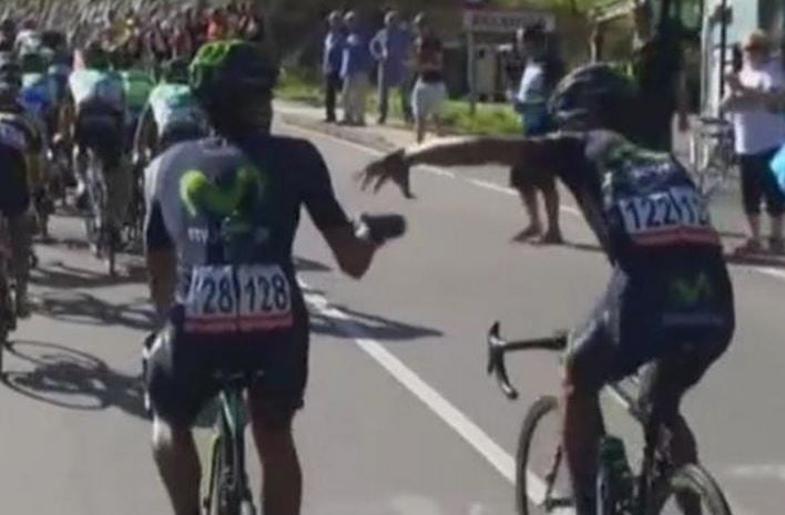 El tico vio que su coequipero Fran Ventoso iba con exceso de peso, cargado de bidones con agua e hidratante y le dijo que se los diera, para llevárselos a los demás integrantes de Movistar Team que iban adelante
