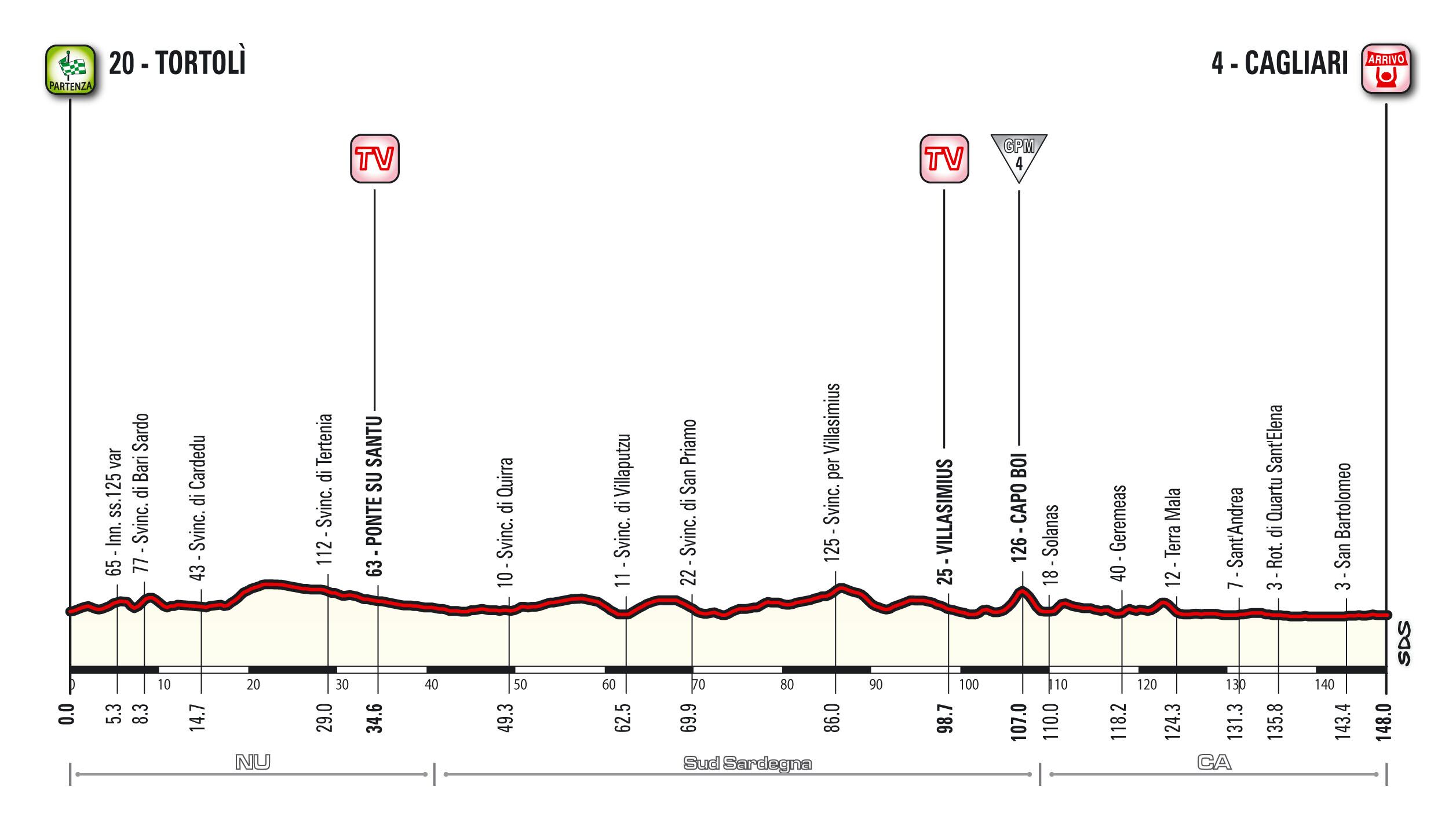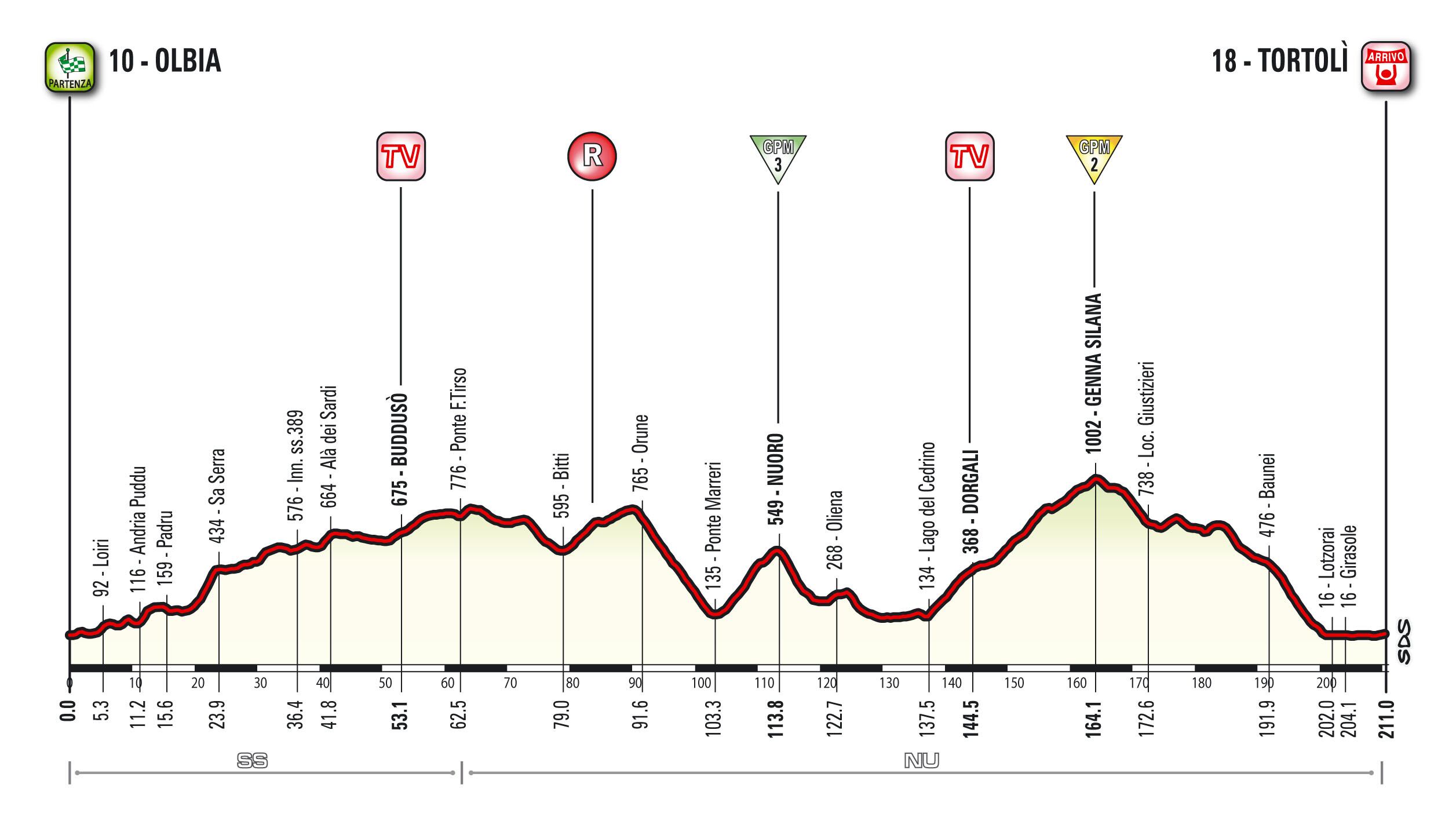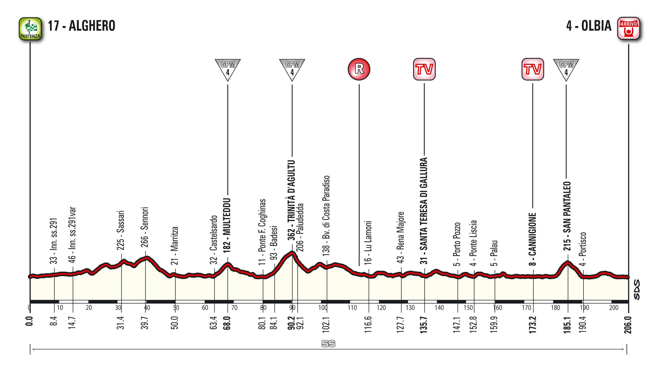 La largada inaugural comprende una extensa ruta de 206 kilómetros entre Algher y Olbia.