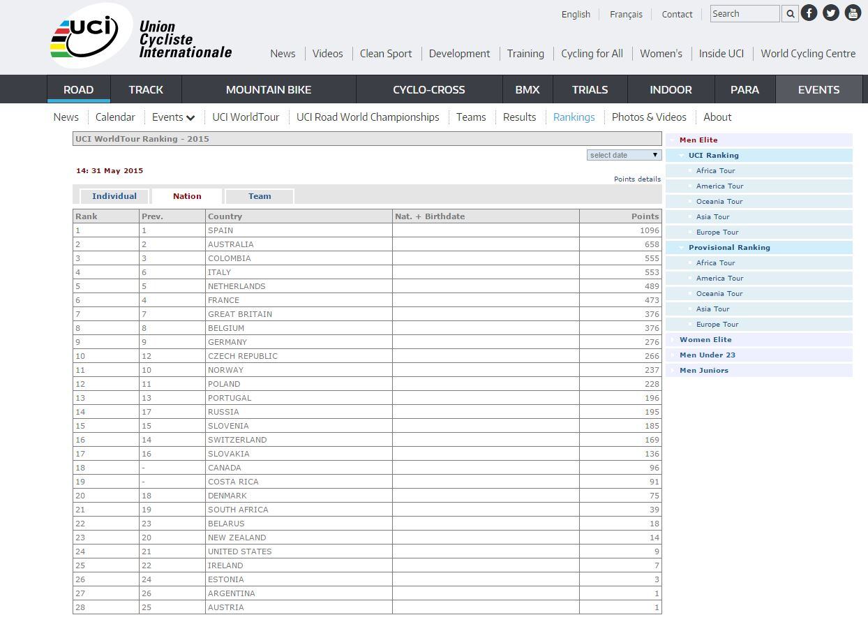 "Si al terminar el año, él logra que Costa Rica esté entre los primeros 15 países del ranquin mundial, se obtendrán cuatro plazas y eso es porque de los 15 países que clasifican por WorldTour, los que se ubican del 1 al 15 se adueñan de 5 plazas y los que quedan del 6 al 15 se dejan 4 cupos", expresó el vicepresidente del Federación Costarricense de Ciclismo, Marco Echeverría.