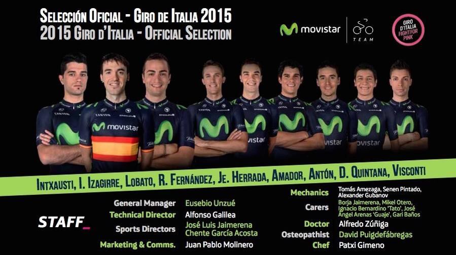 Beñat Intxausti, Ion Izagirre, Juanjo Lobato, Rubén Fernández, Jesús Herrada, Andrey Amador, Igor Antón, Dayer Quintana y Giovanni Visconti correrán la ronda italiana. (Movistar Team)