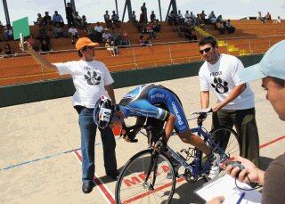 Los dos ciclistas del equipo Dos Pinos-Coopenae tardaron exactamente el mismo tiempo para recorrer las tres vueltas a la pista, que equivalen a un kilómetro.