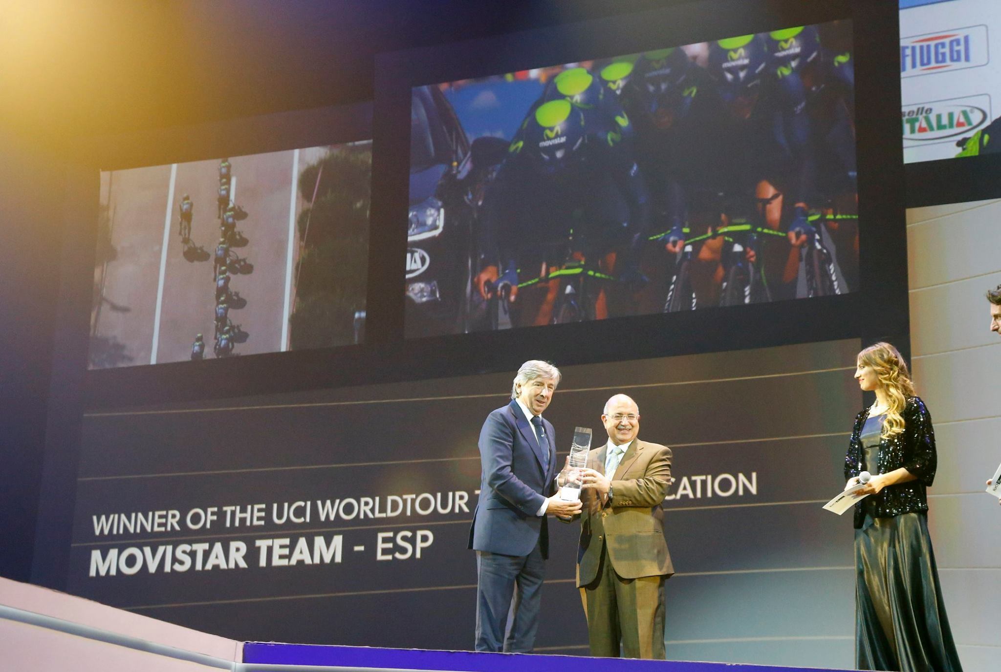 La escuadra telefónica recibió oficialmente el trofeo como tricampeón mundial, tras ganar por tercer año consecutivo el ranquin WorldTour.