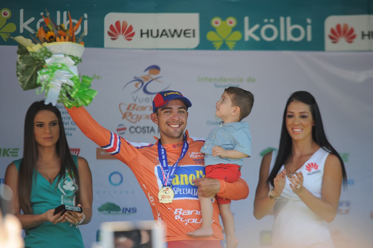 En el podio, Román siguió disfrutando de su bebé y Gael está completamente familiarizado con el mundo de las bicicletas, porque su papá es uno de los referentes del país y su mamá, Daniela Robles, tiene varios de trabajar como la encargada de prensa de la Federación Costarricense de Ciclismo (Fecoci).