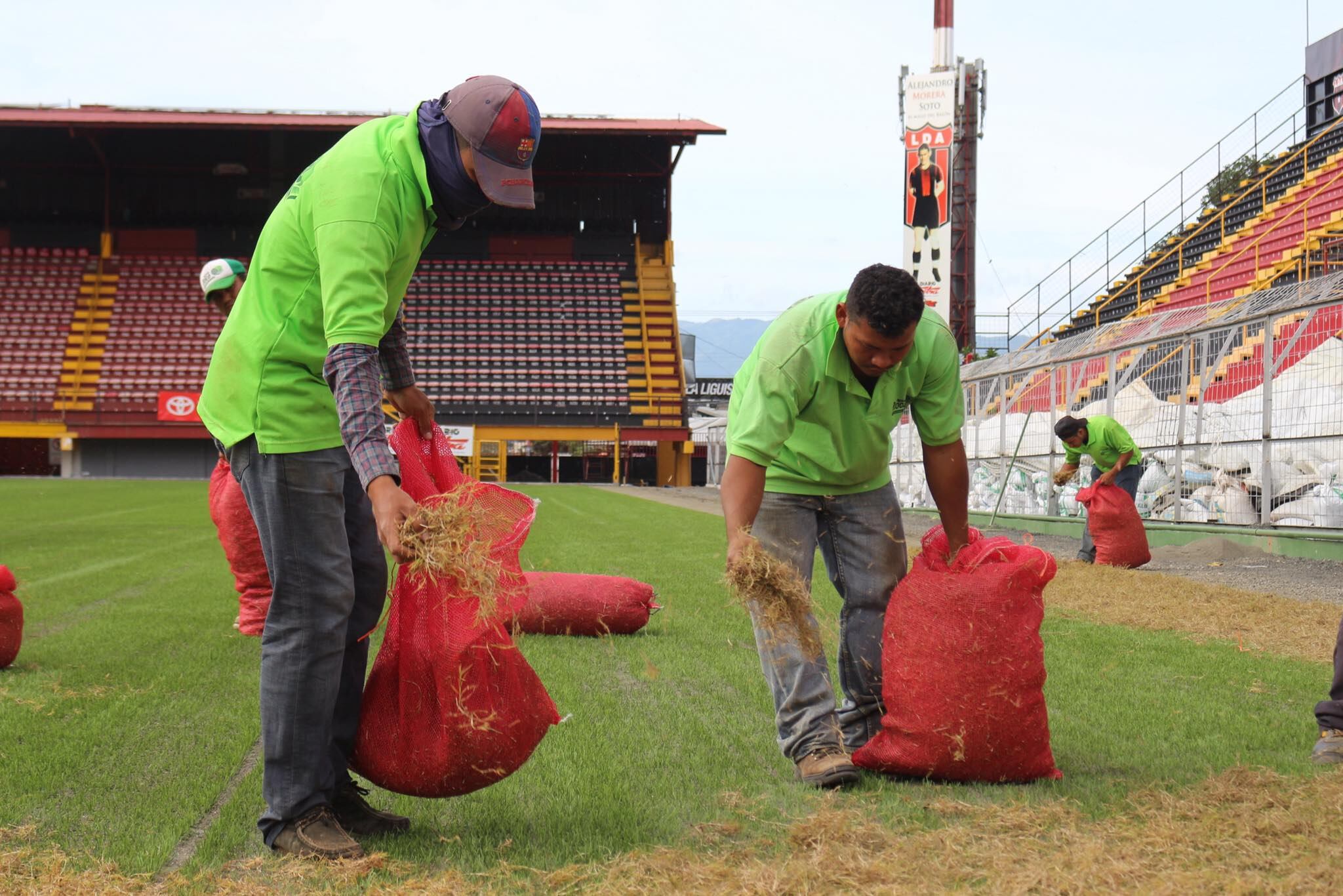 Alajuelense hace la siembra y solo falta que crezca la gramilla híbrida en el Morera Soto