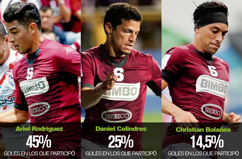 Aunque la palabra tridente resulte ser muy gruesa en el fútbol, lo que posee Saprissa en su zona de ataque bien podría llamarse de esta manera: los tres tibaseños tuvieron que ver en 40 de los 48 tantos saprissistas, entre conquistas y asistencias.