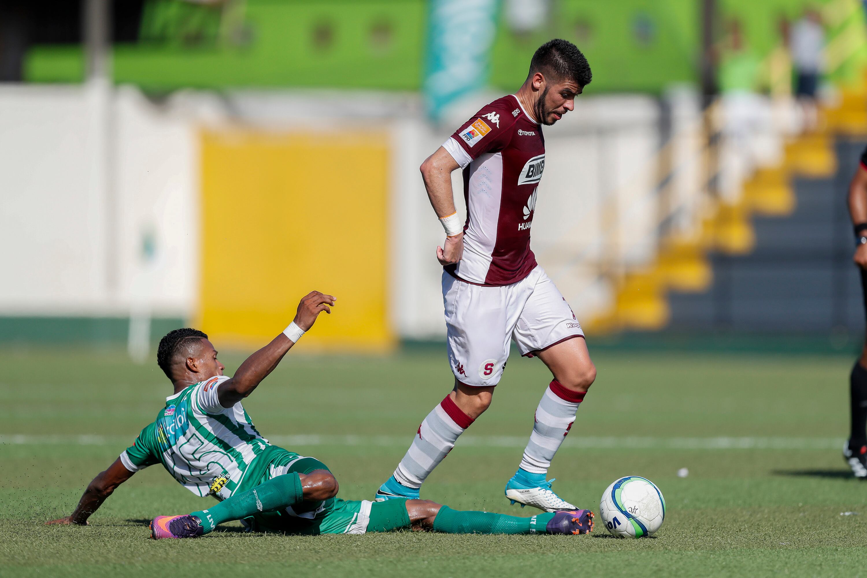 El morado Ulises Segura intenta dejar en el camino al limonense Greivin Mendez esta tarde en el Juan Gobán. (José Cordero)