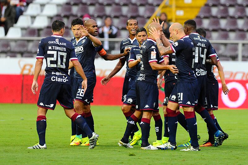 Los jugadores del Deportivo Saprissa celebran una de las seis anotaciones ante Limón FC (Luis Navarro)