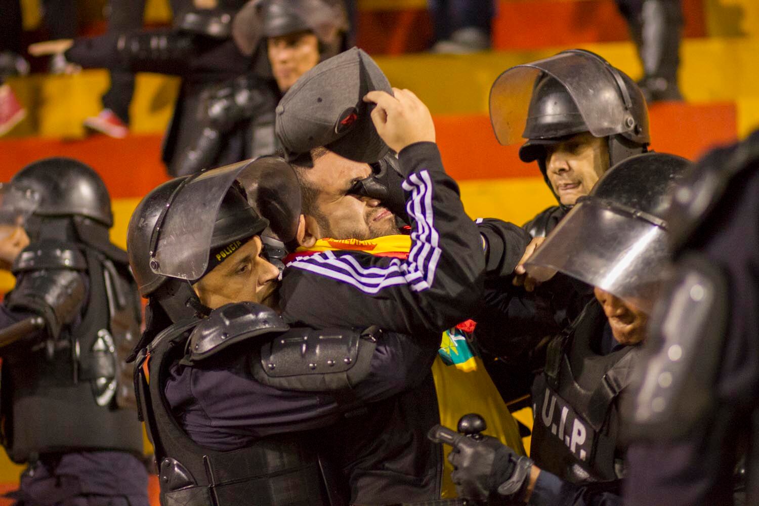 Incluso, el central del juego, Rándall Poveda, suspendió el compromiso en dos oportunidades y los miembros de la seguridad tuvieron que intervenir a la fuerza para evitar que aumentara la violencia.Sacaron a un manudo en la gradería sur Vía @PuroDeporteLN pic.twitter.com/9DF7w4hreJ— Daniel Jiménez (@DaniJ_cr) octubre 1, 2015