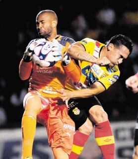 Sí sonrió. Quien sí salió con una gran sonrisa fue Leonel Moreira, el portero de Herediano, pues le atajó un penal a Jamesson Scott en la primera parte, cuando el partido iba 0-0.