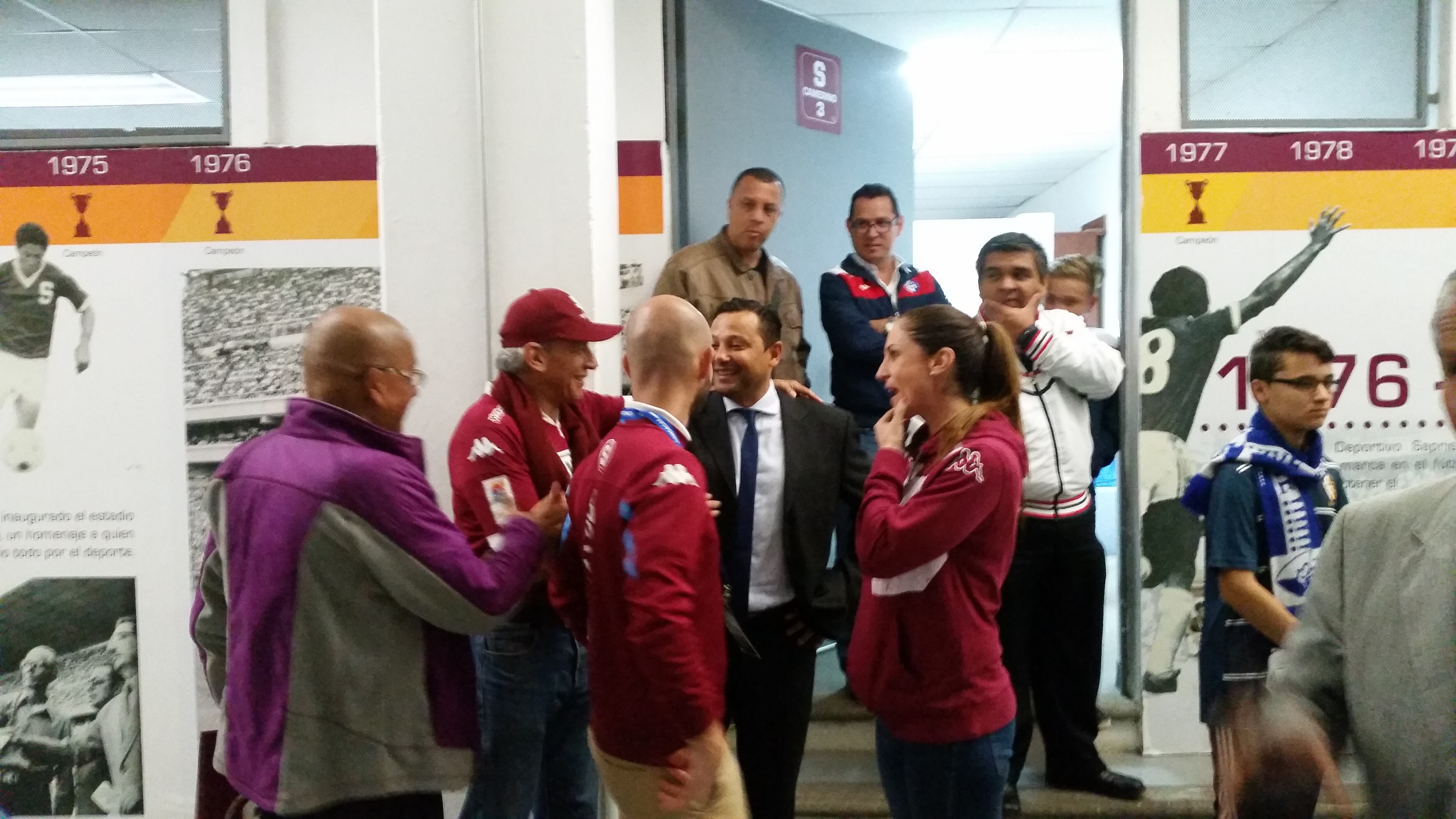Luego, bastaron segundos para que divisaran su presencia en la zona mixta para que le llovieran apretones de mano, sonrisas, abrazos y demás señales propias para un hijo saprissista.