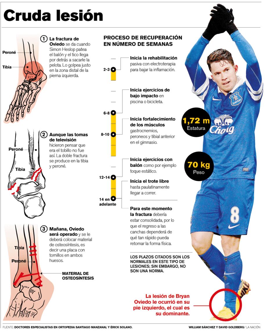 Médico del Everton: 'La cirugía de Bryan Oviedo fue un gran éxito'