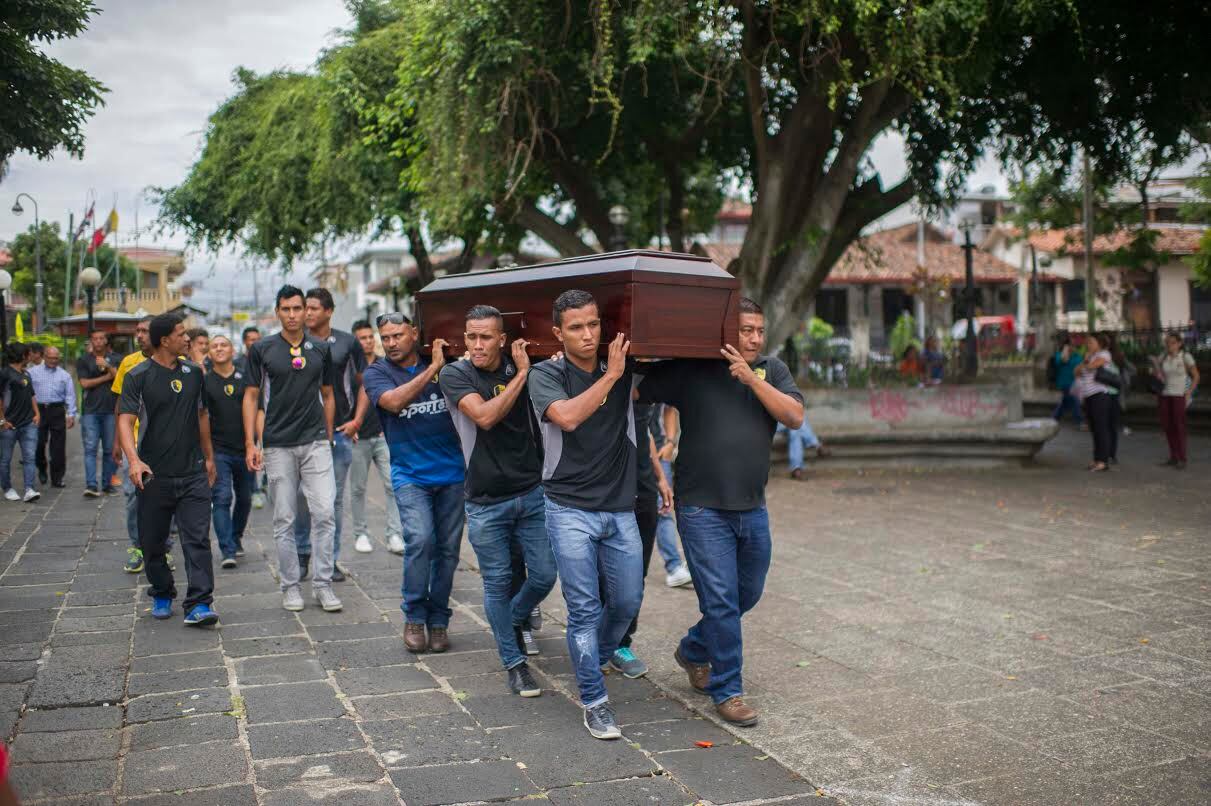Los jugadores de Liberia llevaron el féretro con el cuerpo de Orlando de León. (José Francisco Cordero)