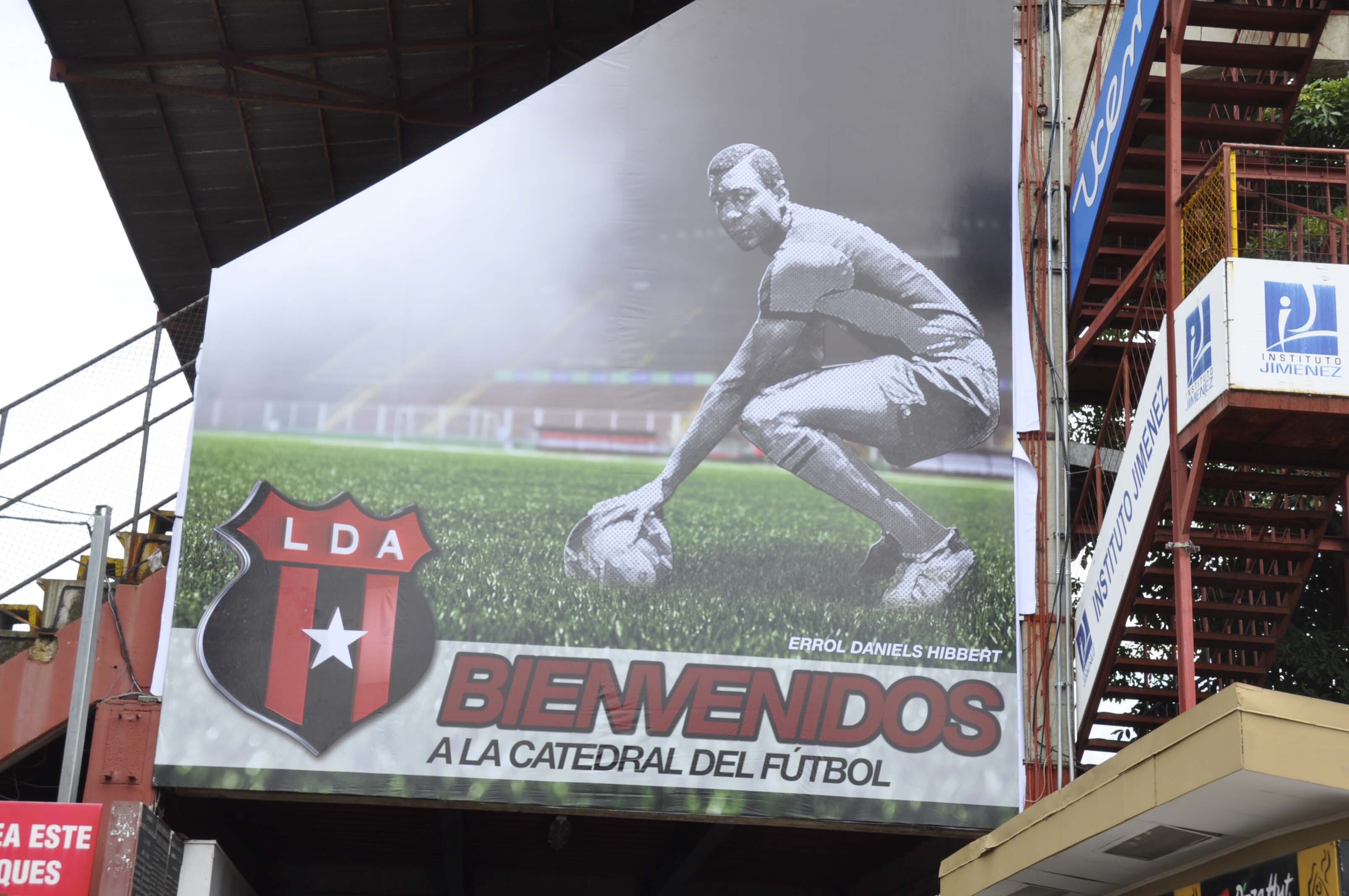 Alajuelense colocó en la entrada de sol un banner de Errol Daniels.