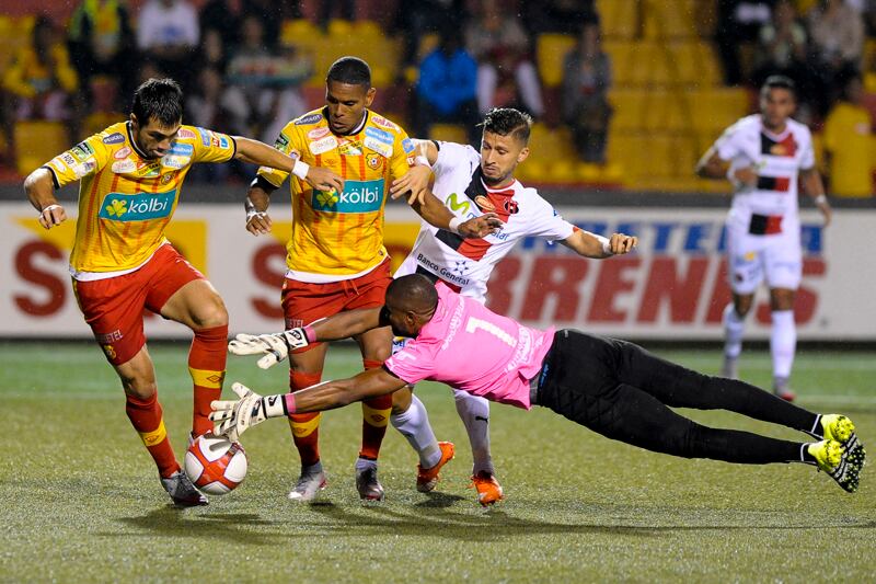 Patrick Pemberton se estira para evitar que el argentino Jonathan Hansen remate. El juego fue parejo y vistoso. | LUIS NAVARRO (Luis Navarro)