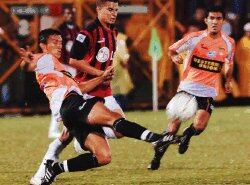 Camacho se fue solo, solito, como si estuviera en tierra de nadie, a enfrentarse a Ricardo González: el mano a mano lo resolvió con un toque justo a su derecha.