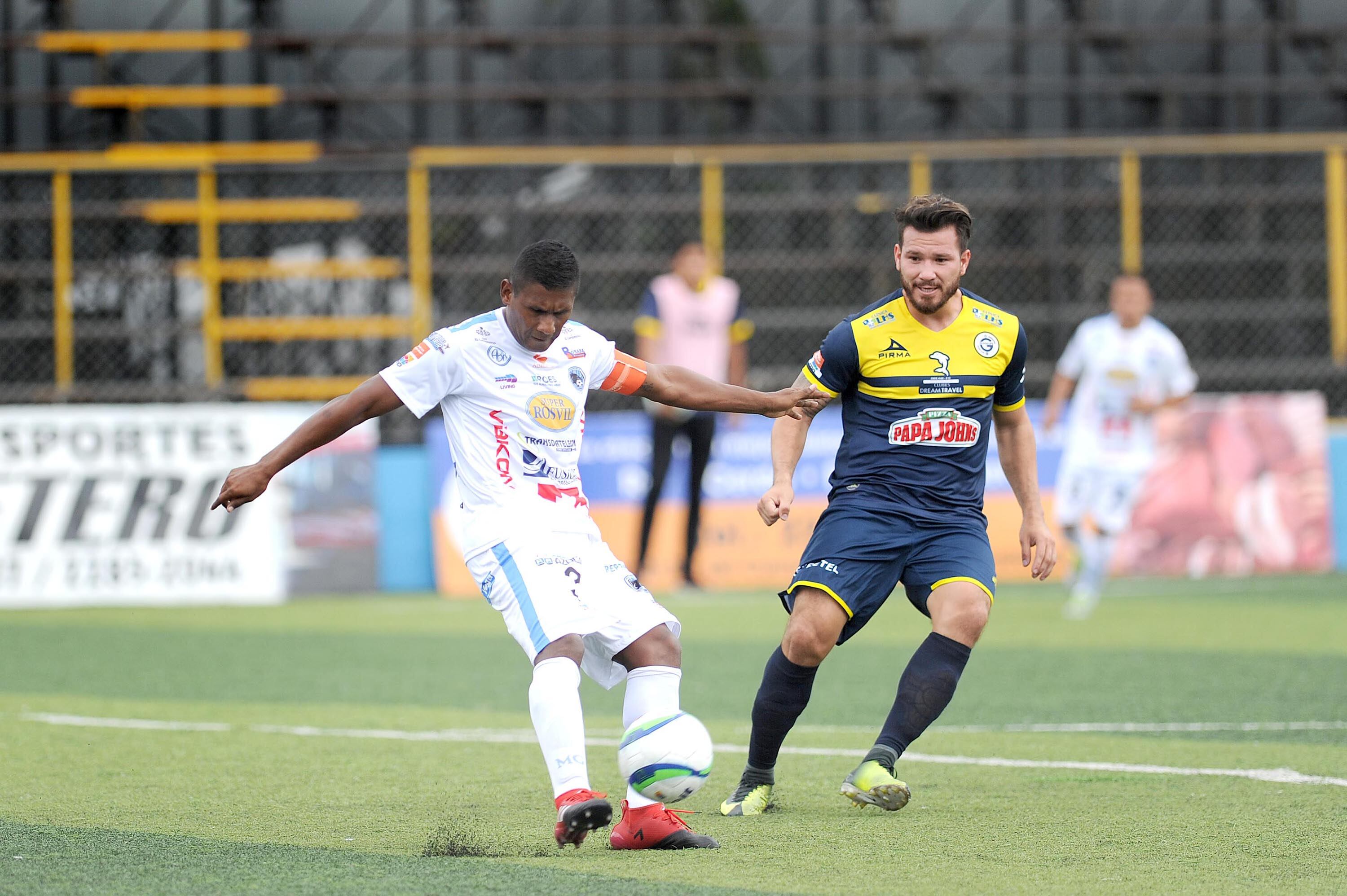 El jugador Jorge Alejandro Castro (derecha) se dirgía a marcar al zaguero de Grecia Daniel Vallejos (izquierda). (Melissa Fernández)