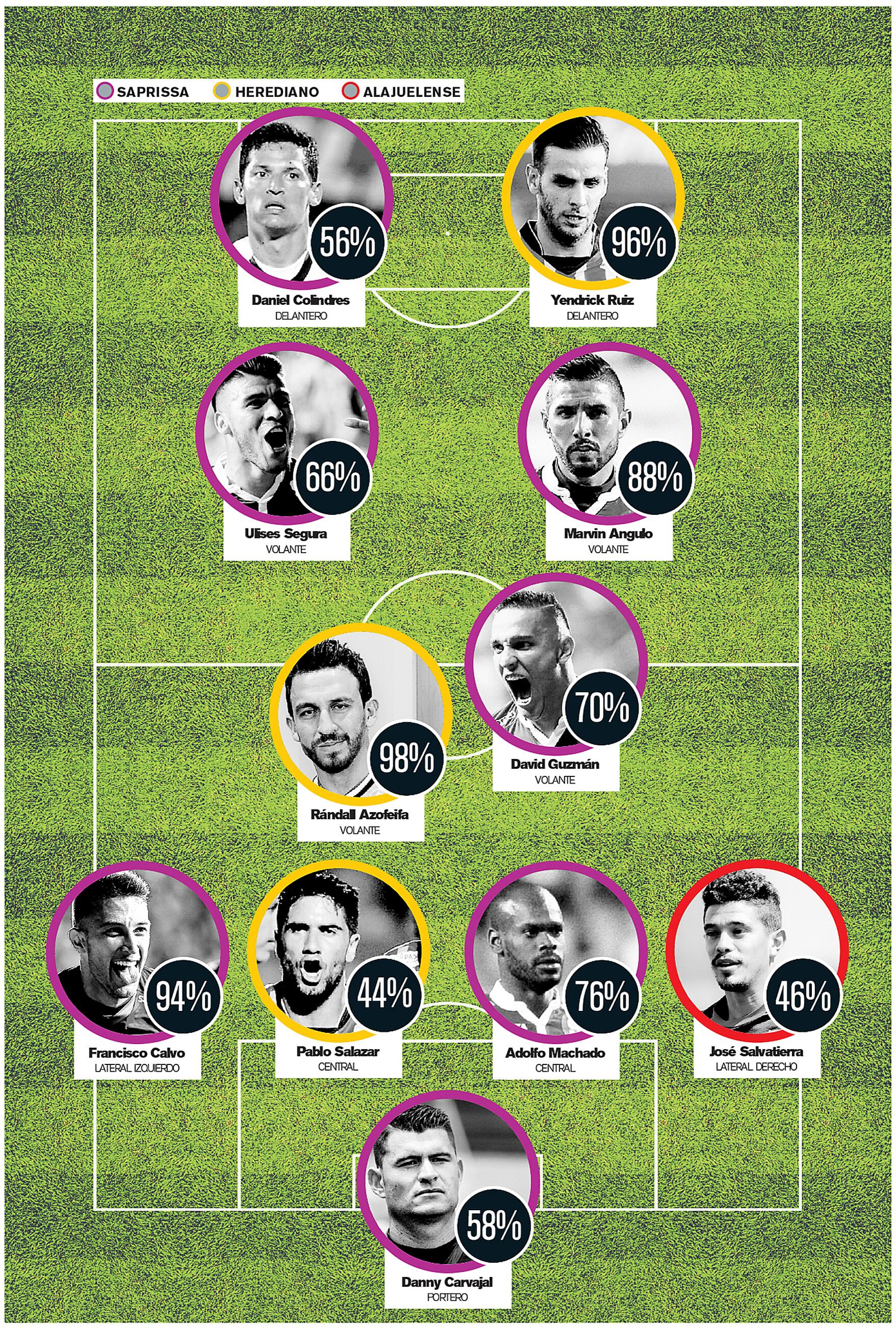 Del Herediano están Pablo Salazar, Rándall Azofeifa y Yendrick Ruiz, que tuvieron su distinción, mientras que de Alajuelense el único futbolista que se ganó un campo fue el lateral derecho José Salvatierra.