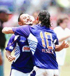 Alonso Solís (10) se felicita con Allan Alemán. En el bando tibaseño todo fue caras felices. | CARLOS GONZÁLEZ